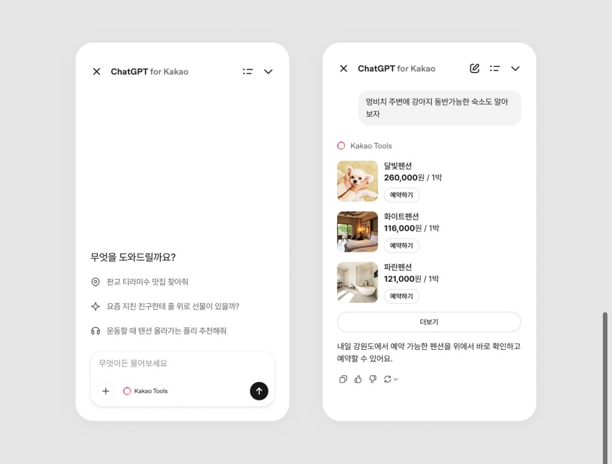 카카오 툴즈를 통해 카카오맵, 예약하기, 선물하기, 멜론 등 카카오의 주요 서비스와 직접 연결되어 완결형 경험을 제공합니다. 향후 카카오 생태계 전반과 외부 파트너 서비스로도 확대되어 공공기관이나 기업에서도 활용할 수 있는 AI 연계 생태계가 구축될 예정입니다.